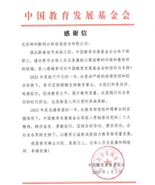 近期,evo真人视讯收到中国教育开展基金会的感谢信,以感谢evo真人视讯2022年在职业教育领域的贡献和实践,尤其是在全国职业院校大赛(中高职组)中对大赛顺利召开所付出的努力。